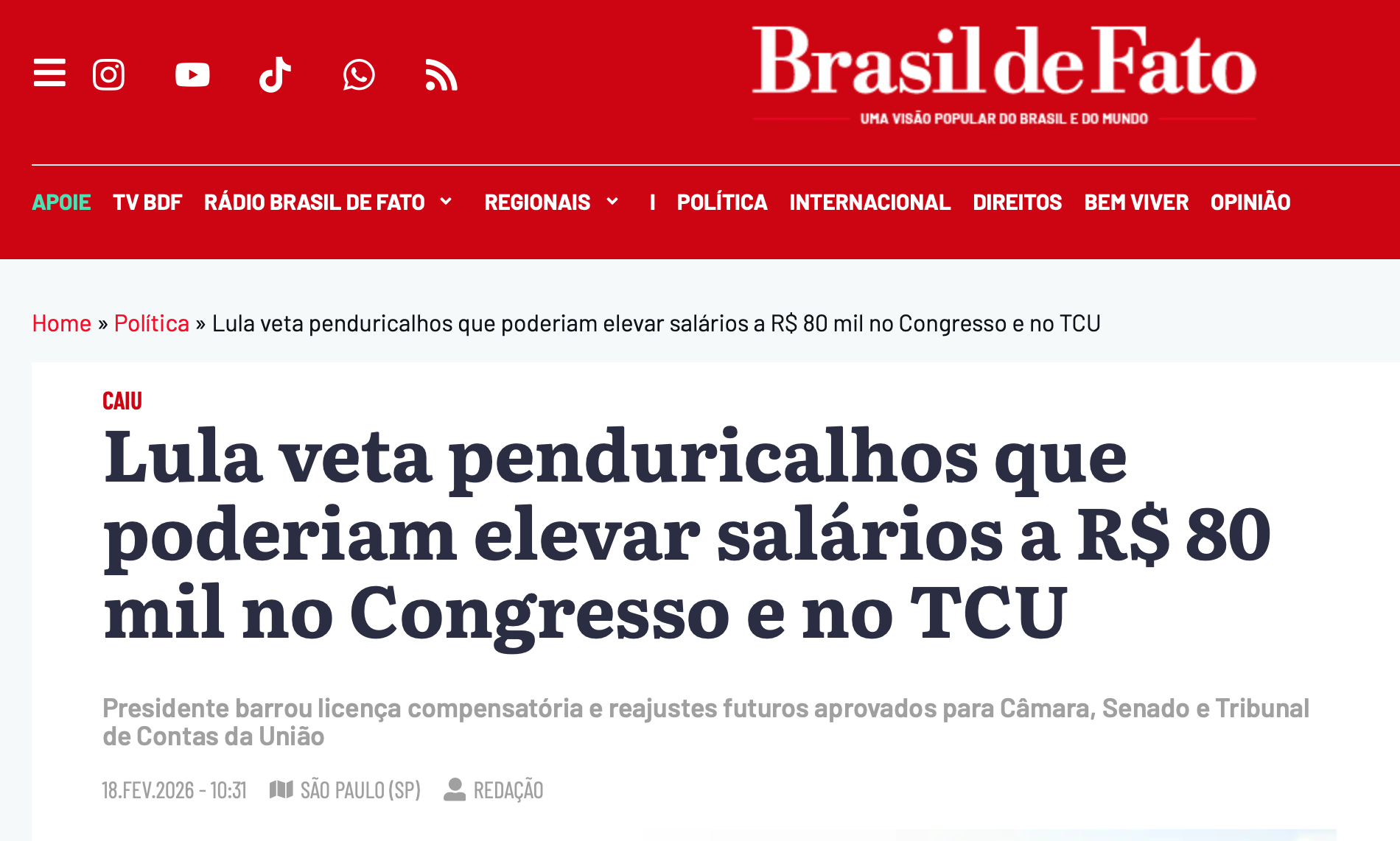 Caso os vetos sejam derrubados, os PL 6070/2025 e 179/2026 permitem vencimentos próximos a até 80 mil reais, expondo o descolamento de grande parte dos parlamentares com a realidade da maioria da população, que enfrenta dificuldades para acessar serviços públicos básicos.